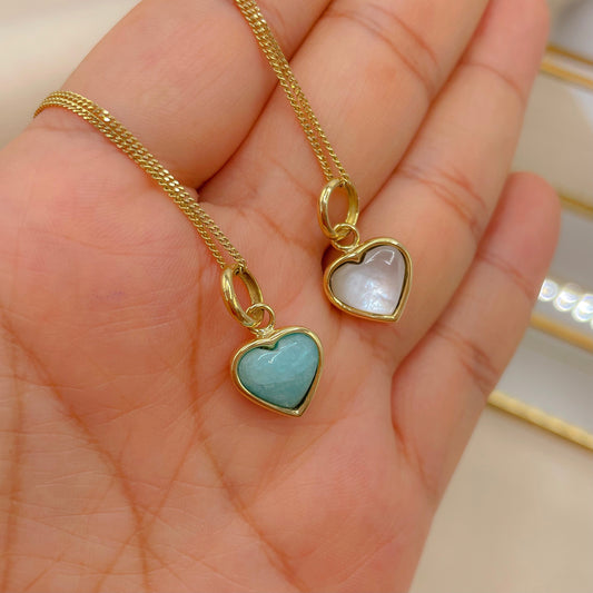CADENA Y DIJE CORAZÓN PIEDRA NATURAL