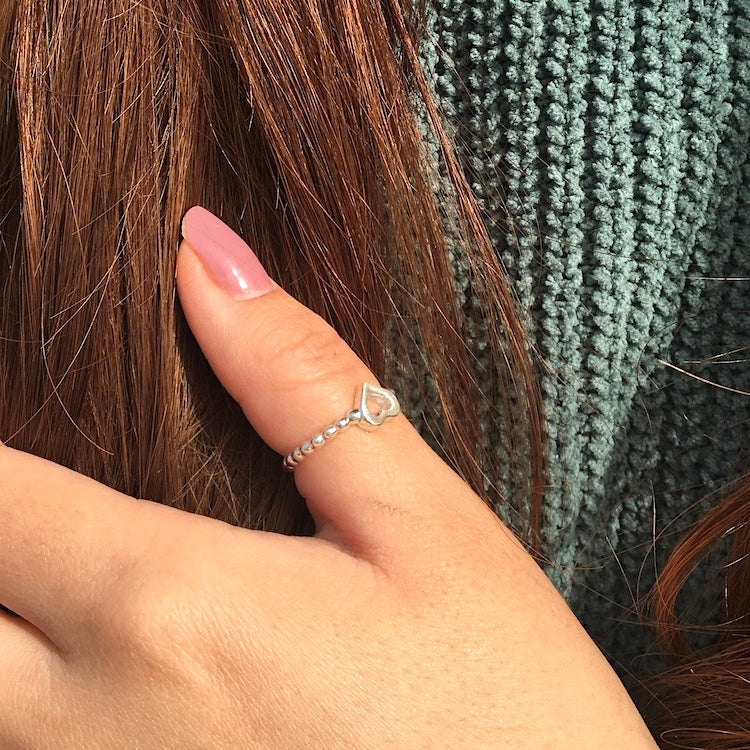 ANILLO CORAZÓN BOLITAS